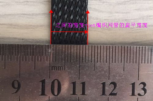 扁平寬度等于定型后的編織網(wǎng)管橫向?qū)挾?,但是這樣測(cè)量一般有2mm的誤差,方法如下圖。